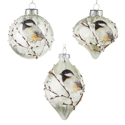 3" ETCHED MERCURY GLASS BALL ORNAMENT