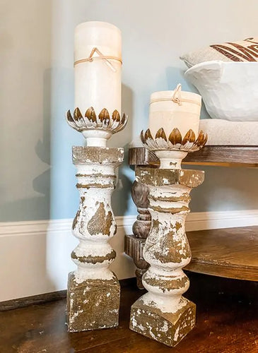 Antique Distressed Crown Candle Holders