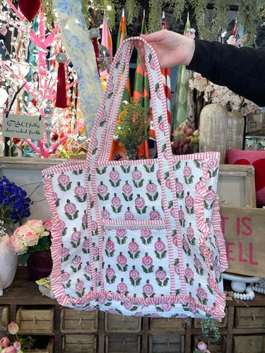 Avery Pink Floral Print Tote Bag