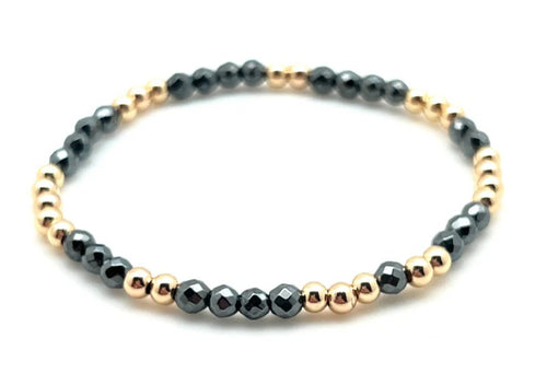 14K Gold Filled Hematite & Gold Eternity Bracelet