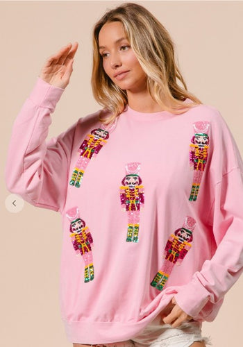Sequin Nutcrackers Embroidery Christmas Pullover