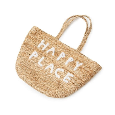 SMALL HAPPY PLACE JUTE TOTE BAG - 15"X12"