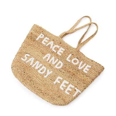 LARGE PEACE LOVE AND SANDY FEET JUTE TOTE BAG - 21"X16"