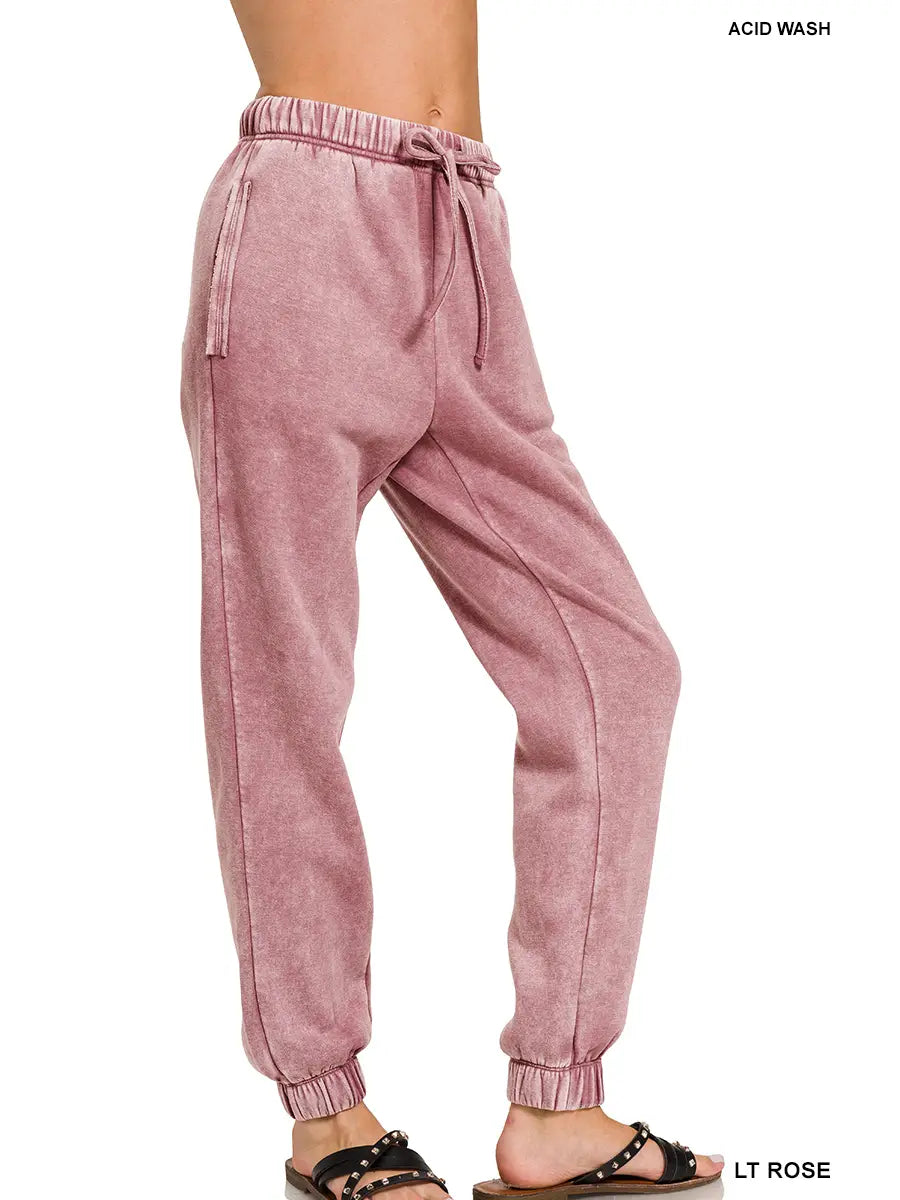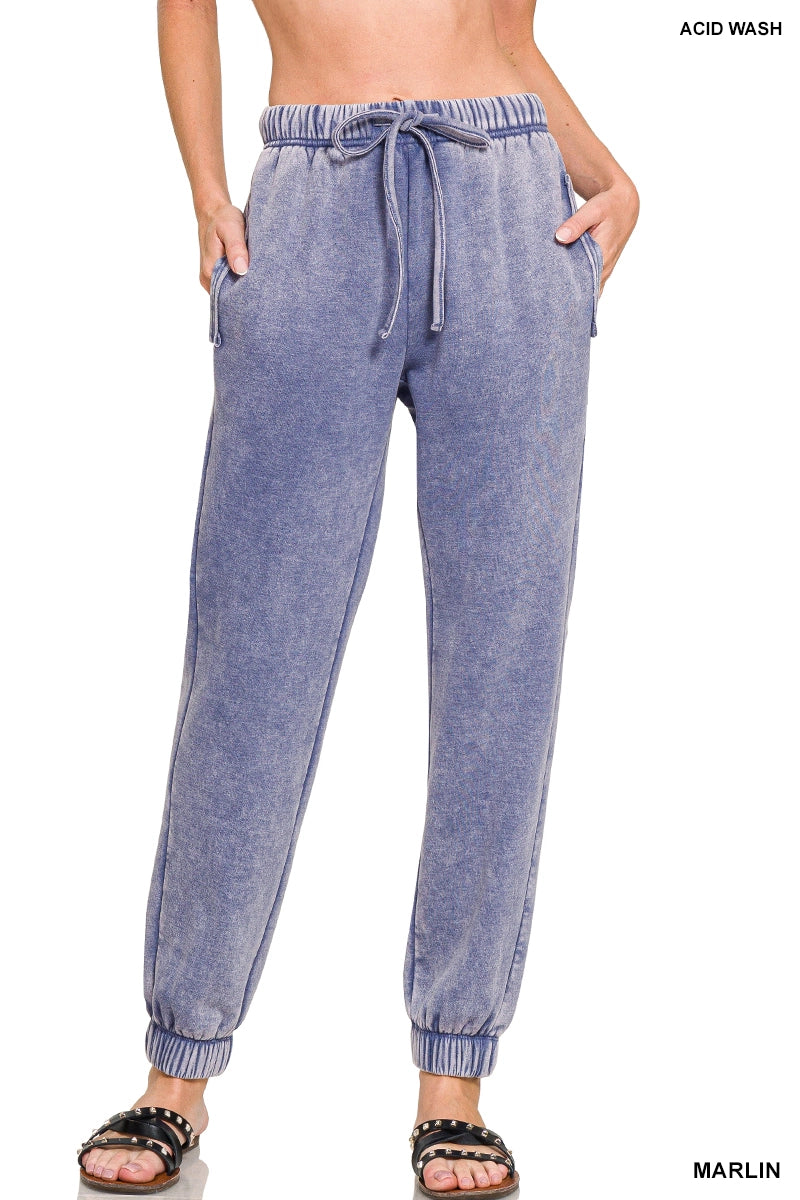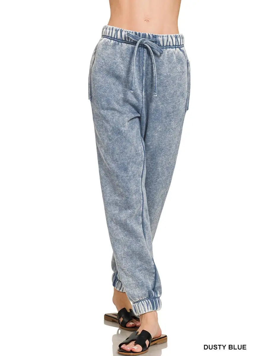 Acid Wash Fleece Sweatpants With Pockets