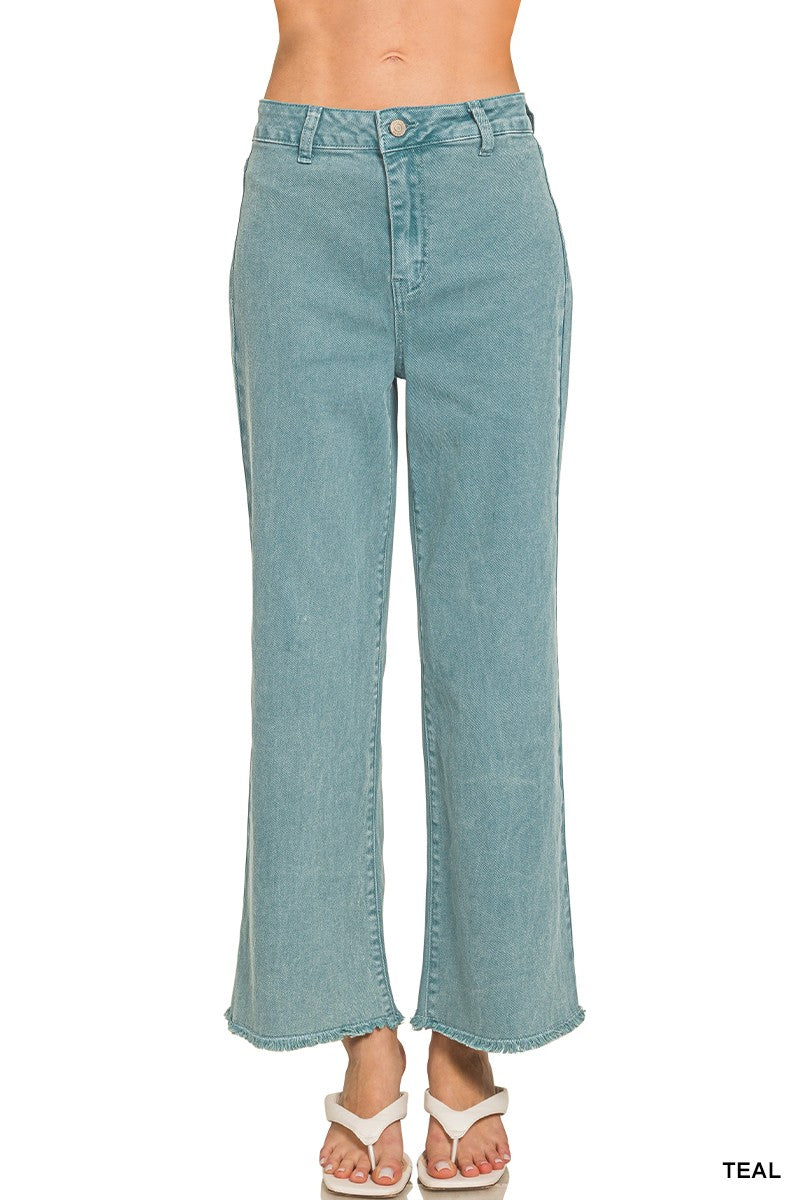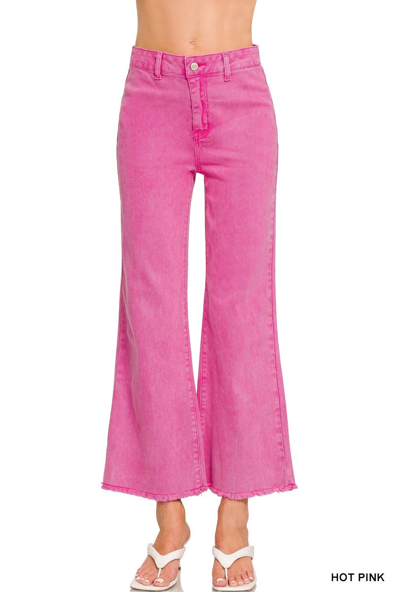 Acid Washed Frayed Cutoff Hem Straight Wide Pants