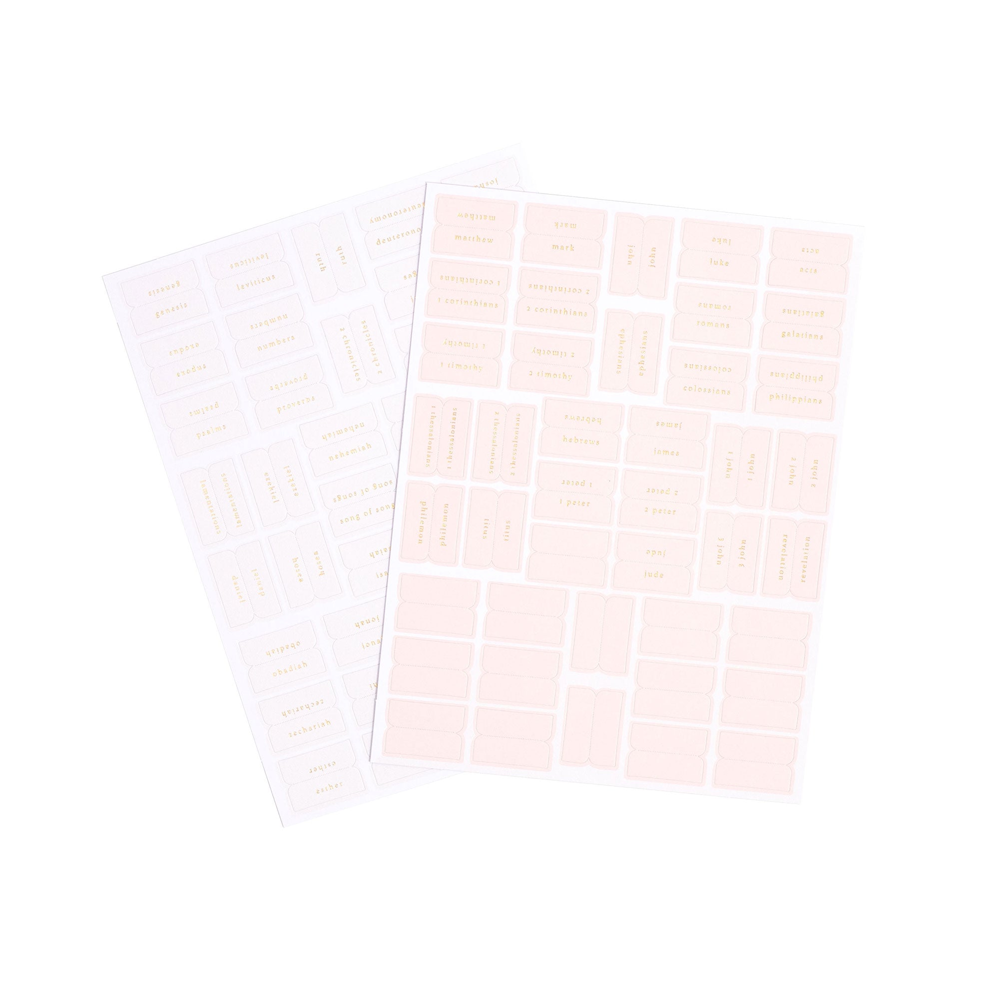 Elevate your Bible study experience with our elegantly designed Bible Tabs. Crafted for both style and functionality, these tabs make it easier to navigate through the pages of your Bible while adding a touch of sophistication to your sacred text. Designed to fit most Bible sizes and bindings, these tabs will enhance the functionality of your Bible. -84 Sticker Bible tabs - 42 tabs in each color.