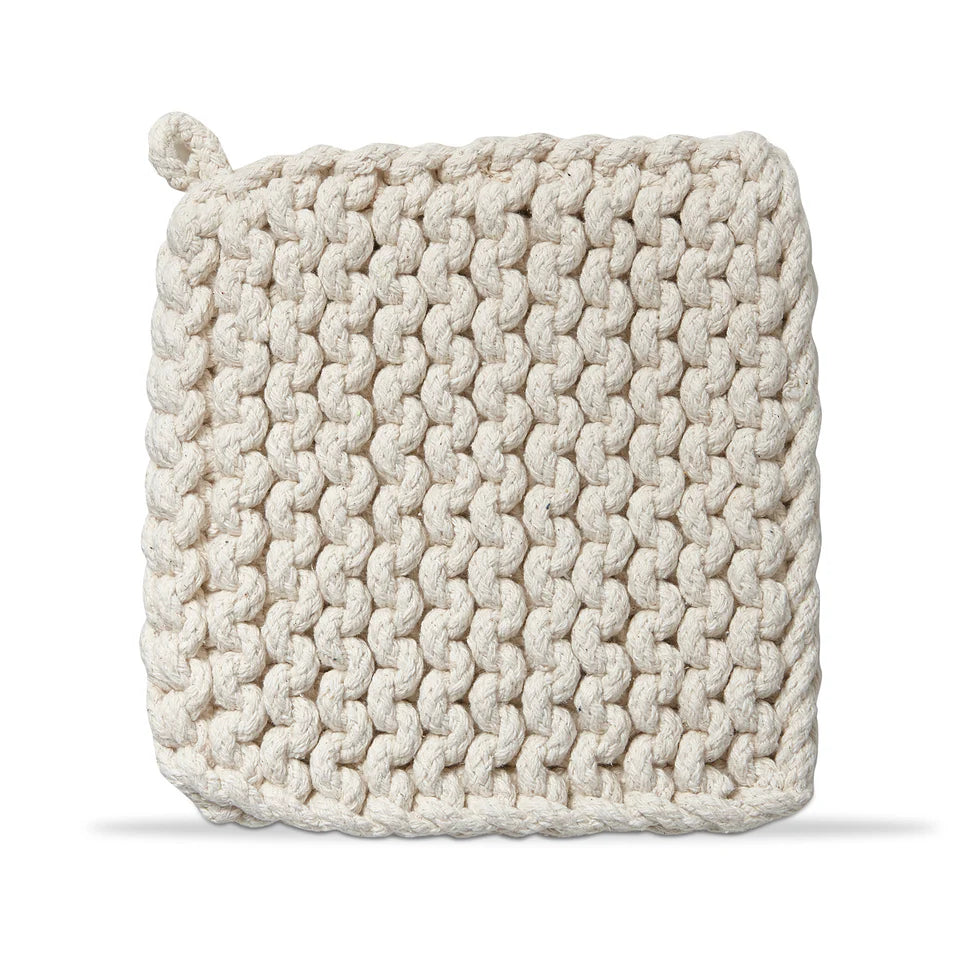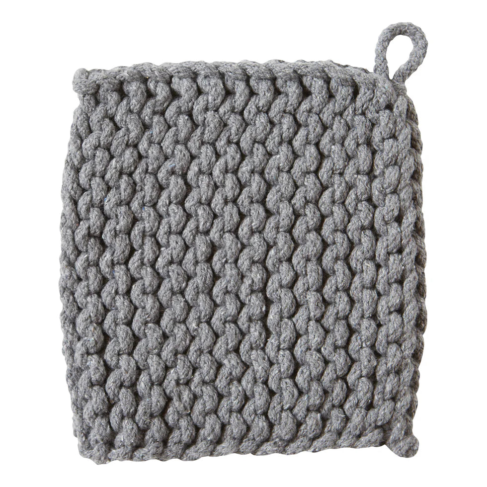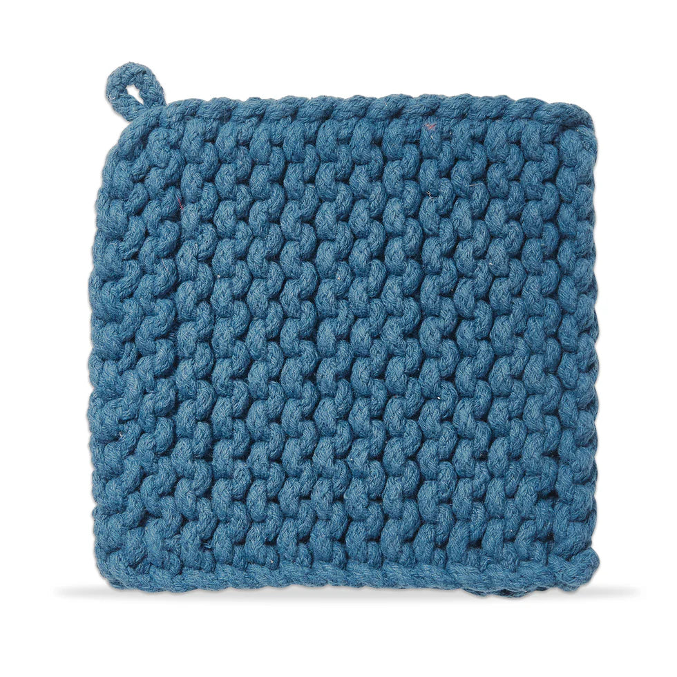 Protect hands and surfaces with a hand crocheted, artisan-made trivet. both stylish and functional, this cotton trivet is perfect for year-round use in the kitchen to hold hot pots and pans! this versatile design can coordinate with all types of kitchen decor, making it perfect for everyday tasks and entertaining. available in a range of gorgeous color options. artisan made. features a fabric loop perfect for hanging. 100% cotton.