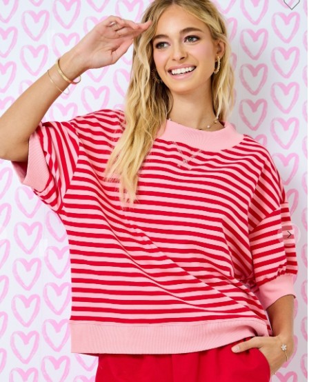 Mock Neck Striped Lounge Sweatshirt W/ 3/4 Sleeve