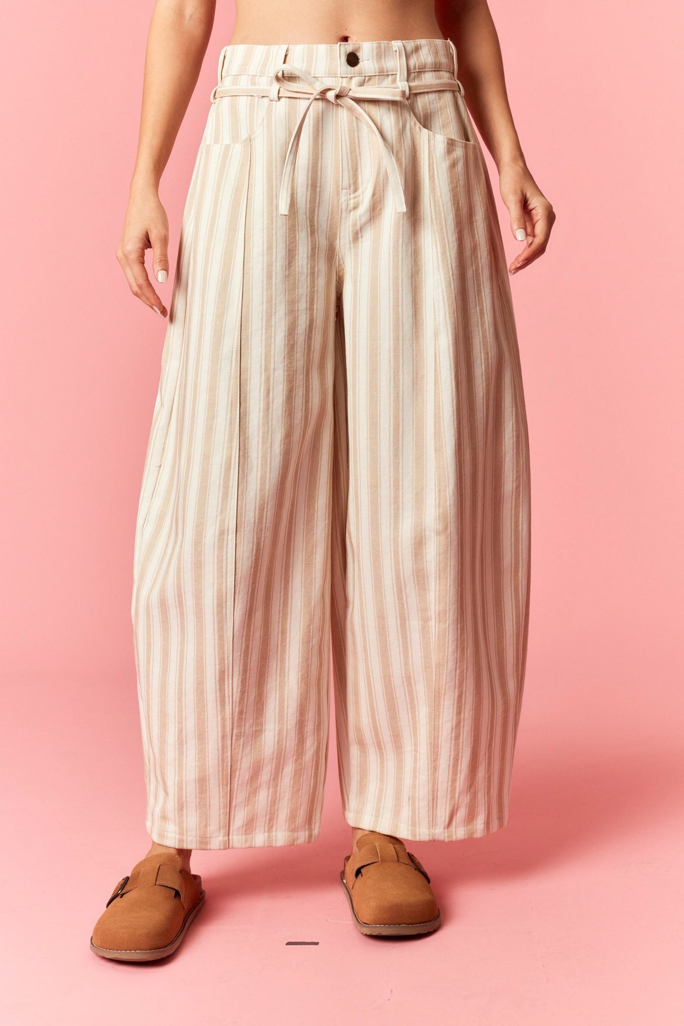 • Load image into Gallery viewer, Multi Stripe Printed Twill Denim Belt Strap Detailed Barrel Jeans